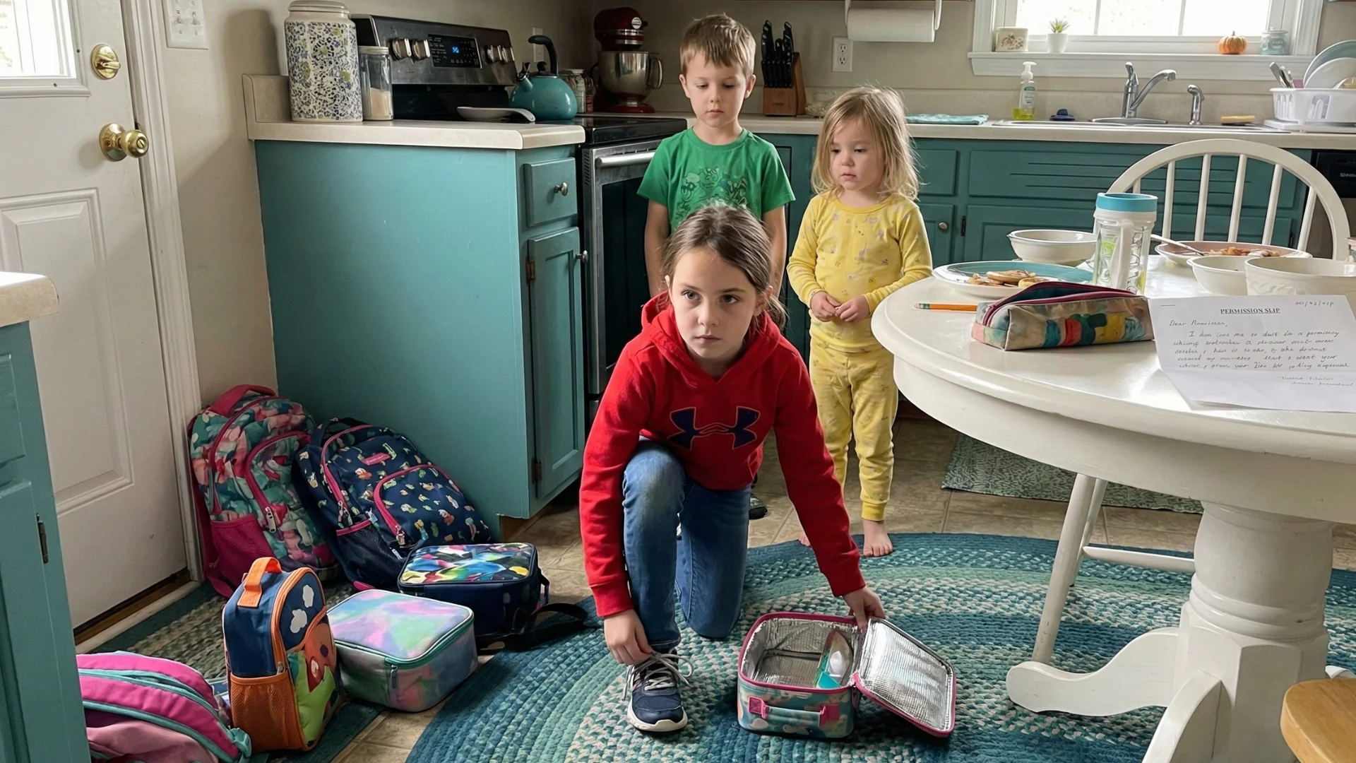 Every weekday, I woke up before my alarm. I made sure they were awake, dressed, and fed. I packed lunches from whatever was left in the kitchen. I checked backpacks for homework. I signed permission slips using my mother’s name because she wasn’t home or wasn’t awake.