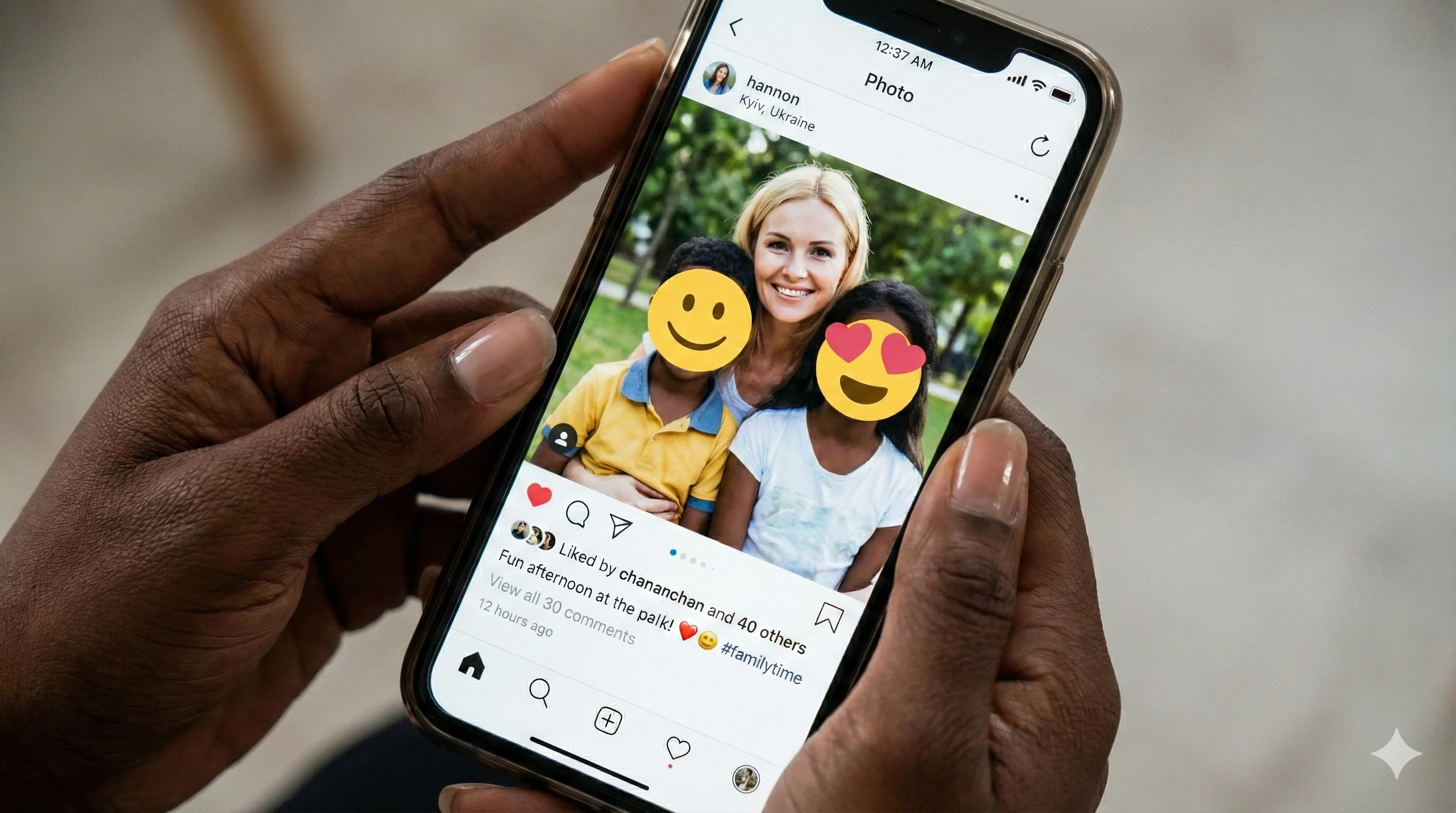 That night, after we got home, I opened her Instagram. My hands started shaking. There were dozens of photos of my children!!! In some, they were drawing. In others, baking cookies. In another, sitting on the floor while she explained something to them. Their faces were covered with emojis, but I knew every gesture. Every posture. Every movement.