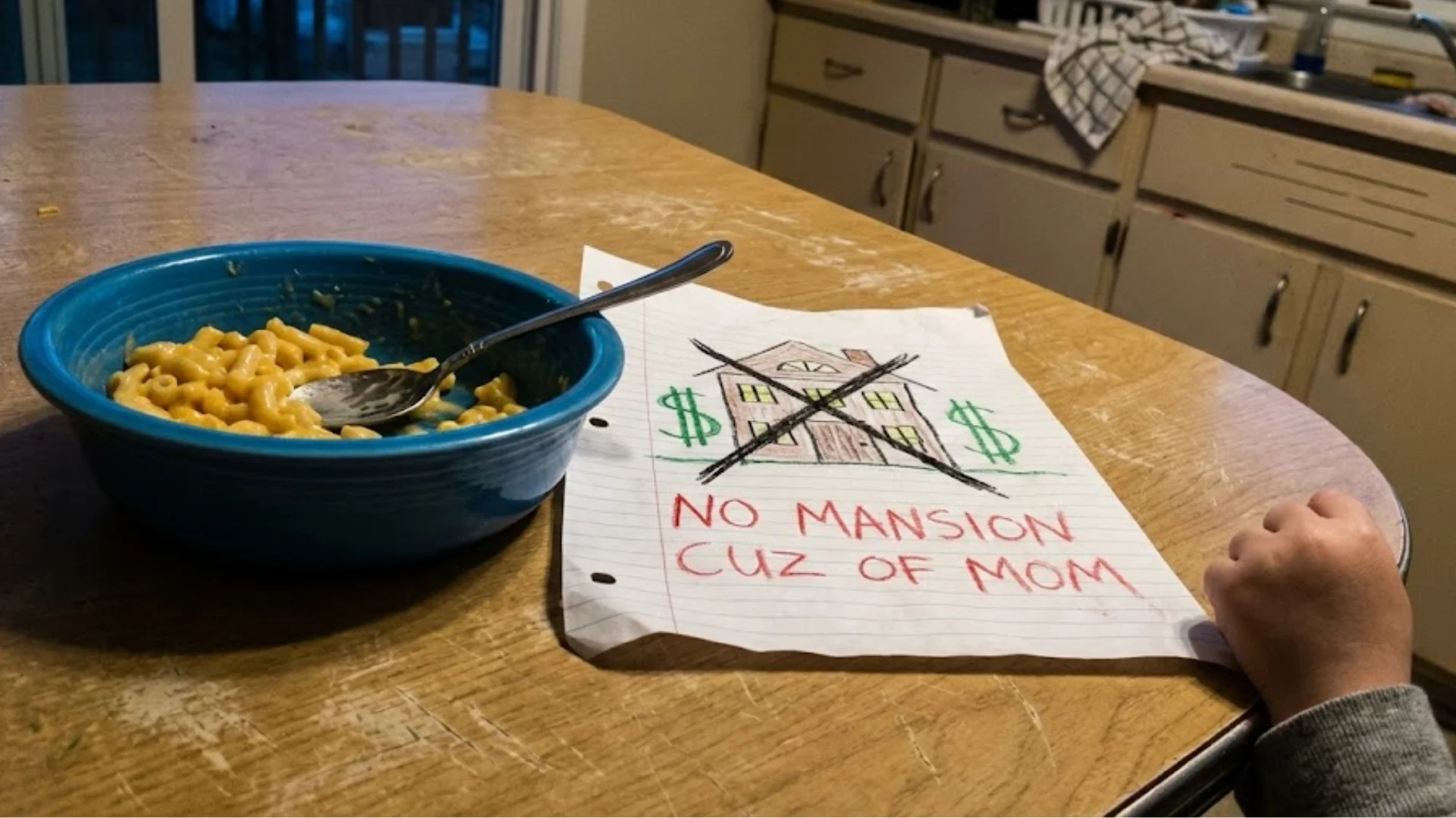 My son Ben saw it. He threw his toy against the wall. "Daddy said we could have lived in a mansion if you didn't take his $280,000," Ben screamed, tears running down his face. "Why do you want us to be poor?"
