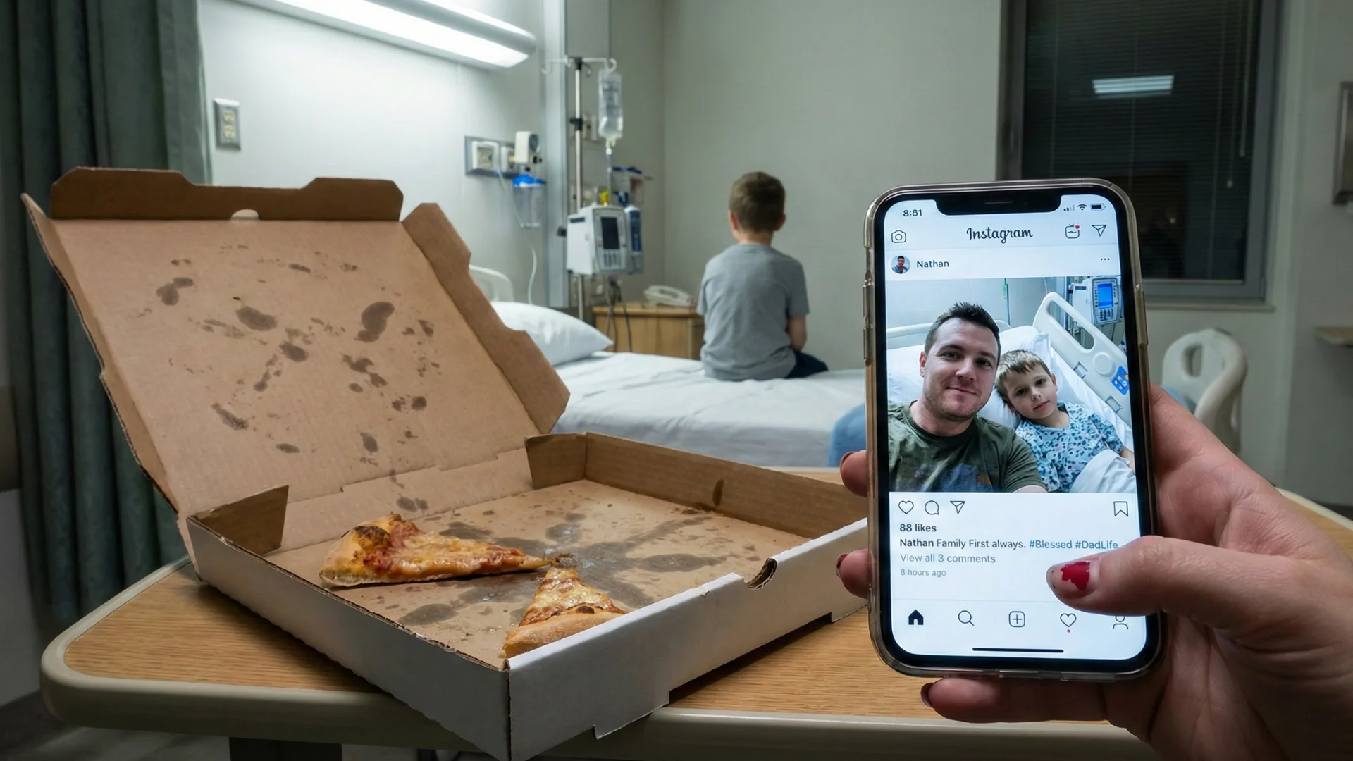 I am sitting in the dark of a hospital room in Atlanta. My phone screen is the only light. My bank account balance is $840. My mortgage is $1,200. My ex-husband, Nathan, just posted a photo from a golf course in California captioned "Investing in myself."