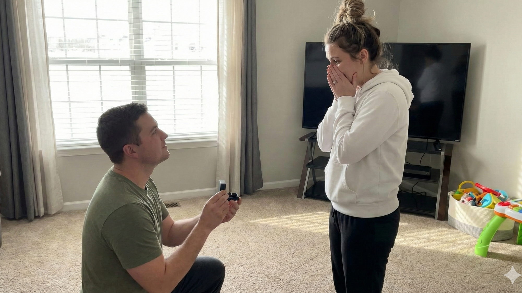 The door shut behind them. Daniel froze. My heart beat like CRAZY, I could hear it pumpign in my ears. I DREADED he’d DUMP me. He turned and DROPPED on his knee.