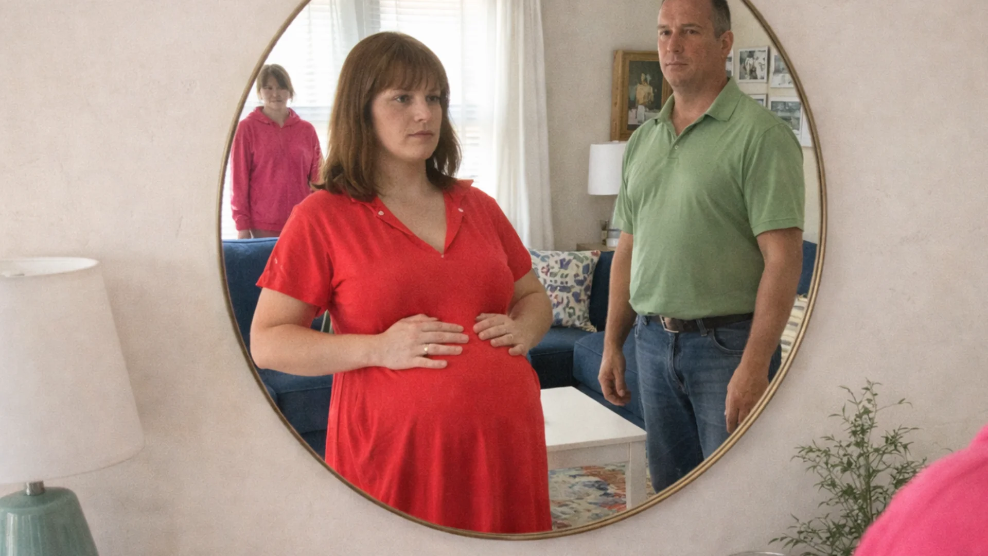 The fake belly appeared on a Sunday. She came downstairs wearing a loose dress and padding underneath. She stood in front of the mirror and adjusted it until it looked real. My father watched without comment. I was told not to come to church. “You’re not feeling well,” my mother said. “Rest is important.”